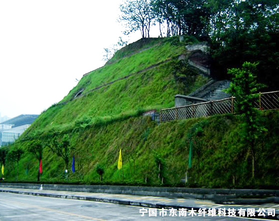 5、蓋無(wú)紡布 (12 -18g/m2)噴混后用高分子聚合物制成的無(wú)紡布由上至下覆蓋坡面,有利于保濕、防沖刷。無(wú)紡布密度要求15-18g/m2 。