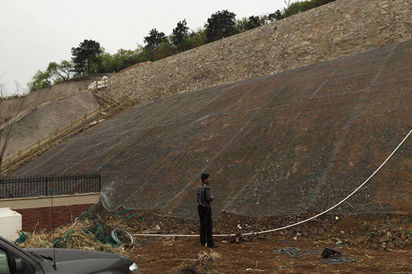 綠化噴漿網(wǎng)是以團(tuán)粒劑使客土形成團(tuán)?;Y(jié)構(gòu),加筋纖維在其中起到類似植物根莖的網(wǎng)絡(luò)加筋作用,從而造就有一定厚度的具有耐雨水、風(fēng)侵蝕,牢固透氣,與自然表土相類似或更優(yōu)的多孔穩(wěn)定土壤結(jié)構(gòu)。