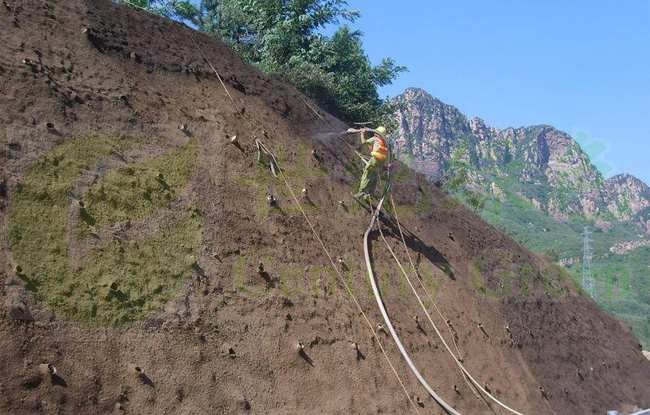 二、噴播技術(shù)及噴播材料、噴播方法。噴播方法噴播方法是近幾年國際綠化行業(yè)的的創(chuàng)新技術(shù),主要用于施工面積大、公路、鐵路兩側(cè)護(hù)坡的種植。噴播技術(shù)是以水為載體,將經(jīng)過技術(shù)處理的植物種子、纖維覆蓋物、粘合劑、保水劑及植物生長所需的營養(yǎng)物質(zhì),經(jīng)過噴播機(jī)混合、攪拌并噴灑到所需種植的地方,從而形成初級(jí)生太植被的綠化技術(shù)。