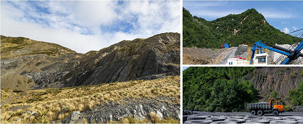 由剝離表土、開采的巖石碎塊和低品位礦石堆積而成的廢石堆積地